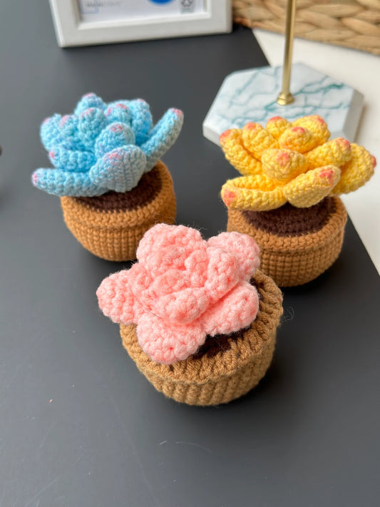 Transform your space with our Crochet Succulent Plant, a delightful blend of creativity and nature-inspired charm. Each succulent, meticulously crafted with crochet flowers, adds a unique touch to your home, office, or car decor.